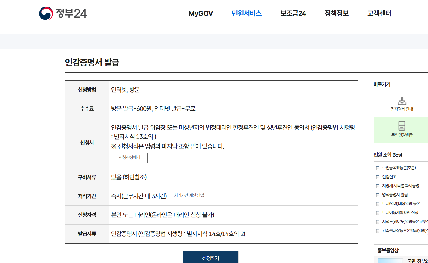 인감증명서 발급 | 민원안내 및 신청 | 정부24