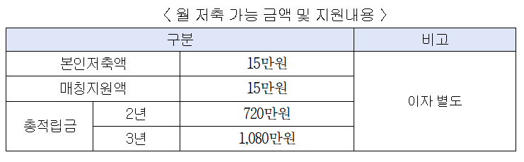 ○ 적립금 총액 [15만 원·2년] 총 720만 원 [15만 원·3년] 총 1,080만 원